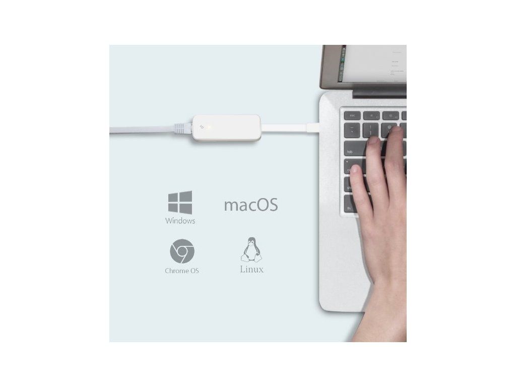 Adaptér je kompatibilní s širokou škálou zařízení – notebooky, stolními počítači, tablety i dalšími zařízeními s USB-C portem. Umožňuje snadné připojení k routeru nebo switchi pomocí klasického ethernetového kabelu.