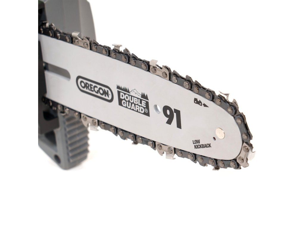 Lišta a řetěz Oregon v kombinaci s rychlostí řetězu 5,5 m/s zajišťují rychlé a čisté řezy čerstvých i suchých větví. Olejová nádrž o objemu 90 ml podporuje plynulý chod a prodlužuje životnost řezných částí. Přehledný ukazatel stavu akumulátoru, intuitivní ovládání a rychlá montáž bez použití nářadí zvyšují pohodlí při každodenním používání.