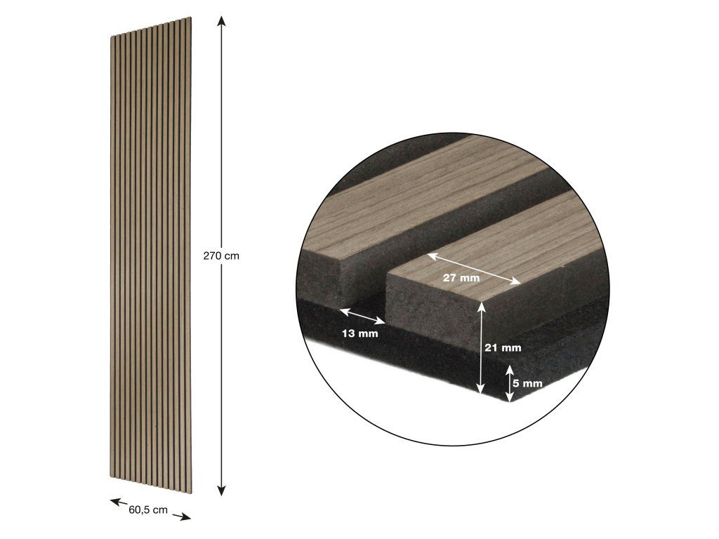 Díky kombinaci polystyrenového vlákna a MDF* materiálu má obklad G21 vynikající akustické vlastnosti. Polystyrénové vlákno je známé pro svou schopnost absorbovat zvuk a snižovat ozvěny v prostoru, zatímco MDF dodává panelu další tuhost a strukturální stabilitu. Akustický obklad G21 spojuje výhody akustické účinnosti, pevnosti a designové variability, což jej činí skvělou volbou pro různé typy prostorů a interiérů.