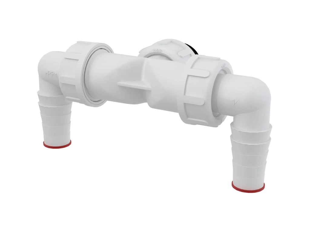 ALCA Dvojité kolínko G 1" × Ø 17–23 mm pro napojení pračky a myčky na sifon, se zpětnými klapkami P155Z-G1