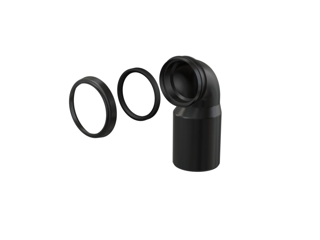 ALCA Koleno odpadu 90° k závěsnému WC, redukce DN 90 × DN 110, délka 205 mm, PE, černá M906