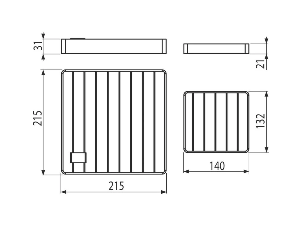 - Rozměry roštů 215×215 mm, 132×140 mm