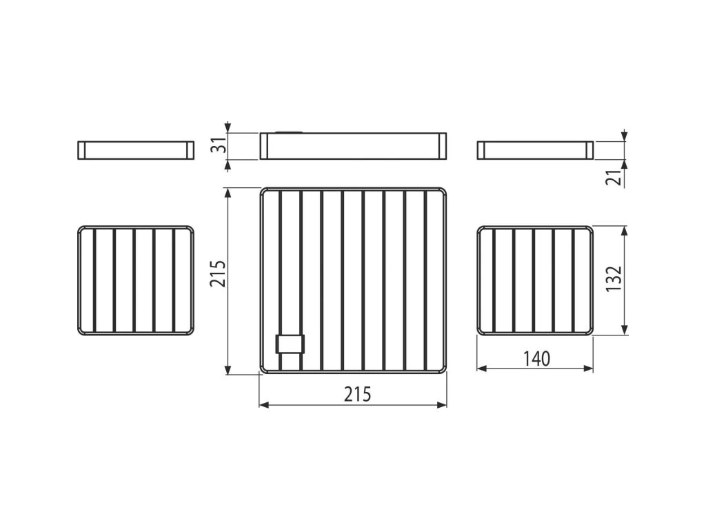 - Rozměry roštů 215×215 mm, 132×140 mm