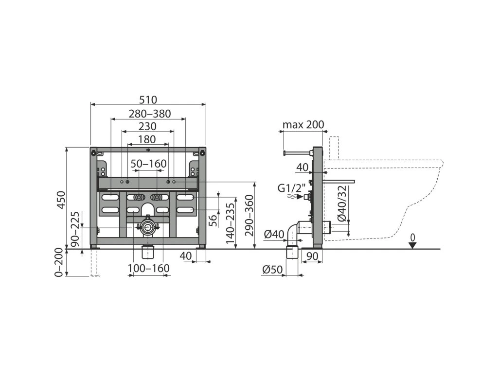 ALCA Montážní rám pro bidet A105/450