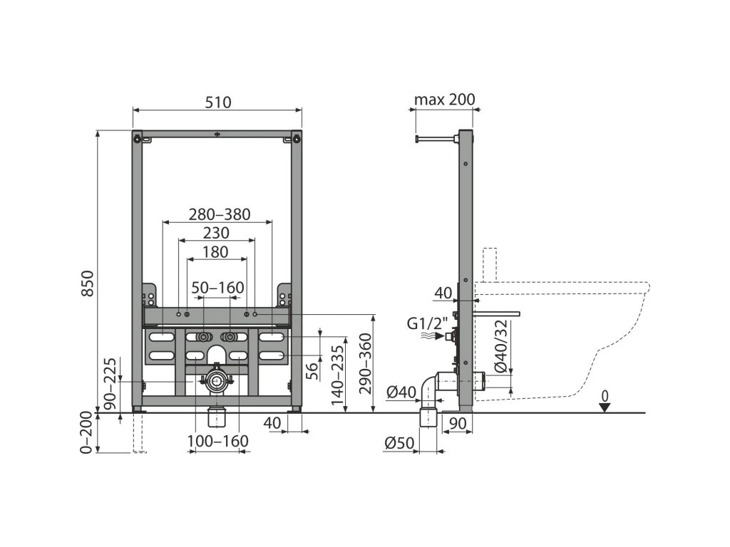 ALCA Montážní rám pro bidet A105/850