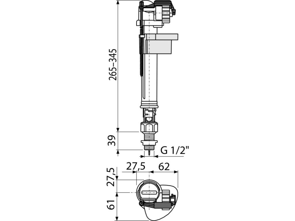 ALCA Napouštěcí ventil spodní, plastový závit 1/2", pro keramické nádržky A17-1/2"
