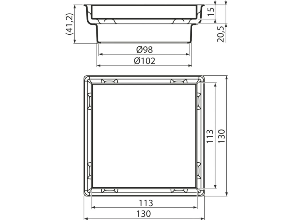 ALCA Nástavec hrdla vpusti + Oboustranný rošt 130×130 mm, nerez APVN0100