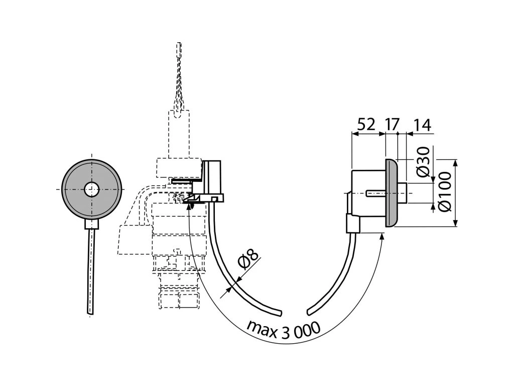 - Hadička 3 m pro propojení tlačítka a vypouštěcího ventilu