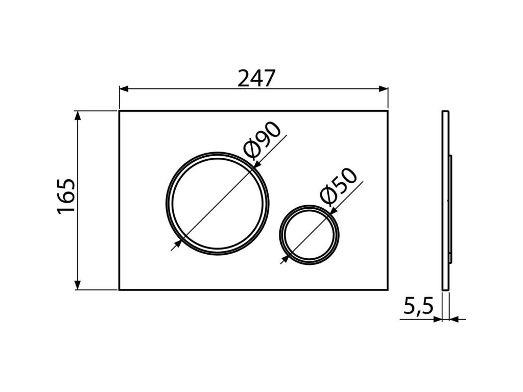 - Tlačítko minimálně vystupuje nad obklad díky tlouštce pouhých 5,5 mm