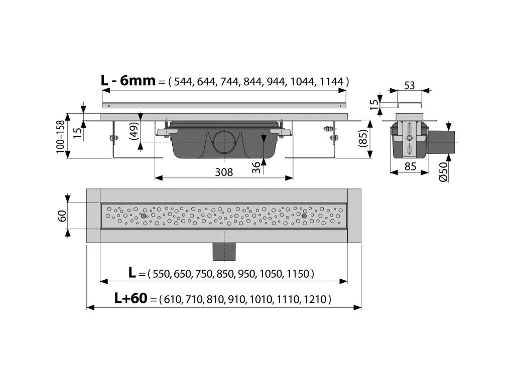 ALCA Podlahový žlab Antivandal s roštem APZ11-550M