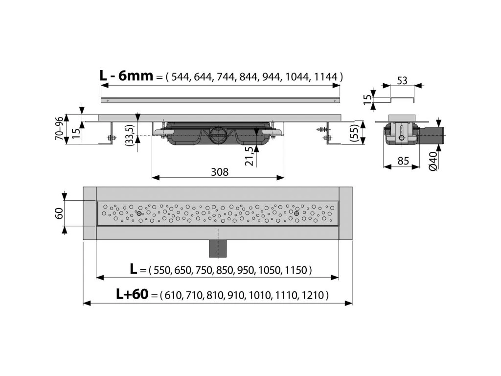 ALCA Podlahový žlab Antivandal s roštem APZ111-850M