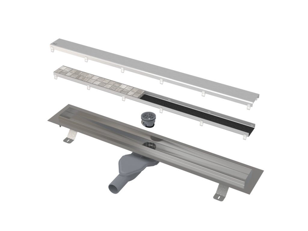- Podlahový žlab z nerezové oceli (dokonale hladký a odolný povrch díky speciální povrchové úpravě)