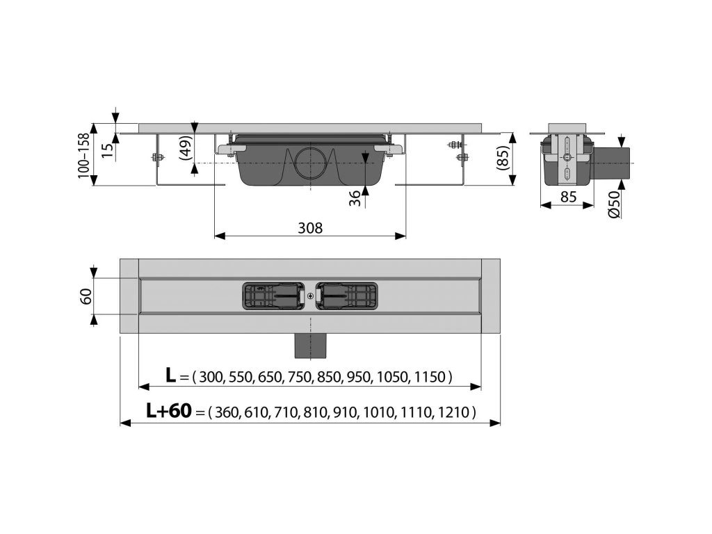 ALCA Podlahový žlab s okrajem pro perforovaný rošt APZ1-1050