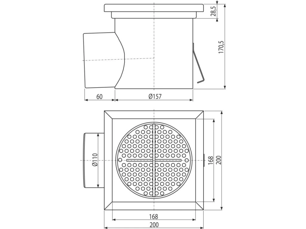 - Materiál vpusti: nerezová ocel 1,5 mm, DIN 1.4301