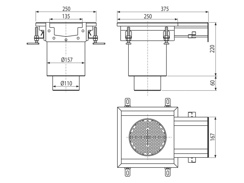 - Pevné ukotvení v betonu pomocí jednoduše nastavitelných noh a bočních kotev