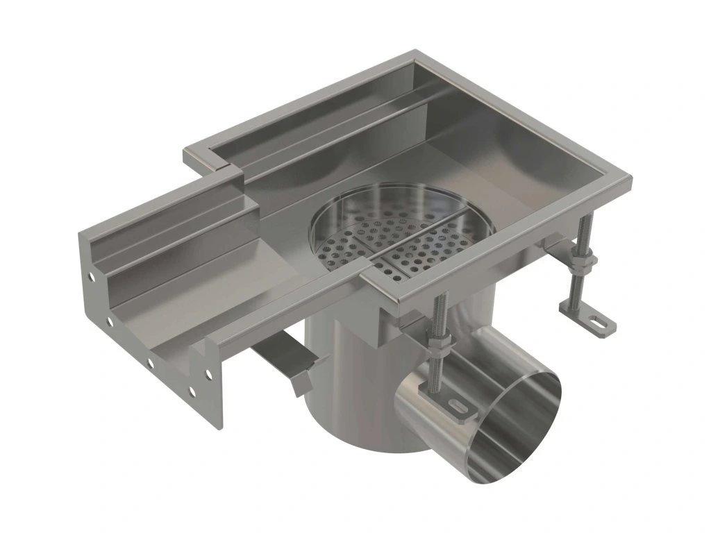 - Pro odvodnění velkých průmyslových prostor a jiných komerčních provozů uvnitř budov, např. v chemickém a potravinářském průmyslu
