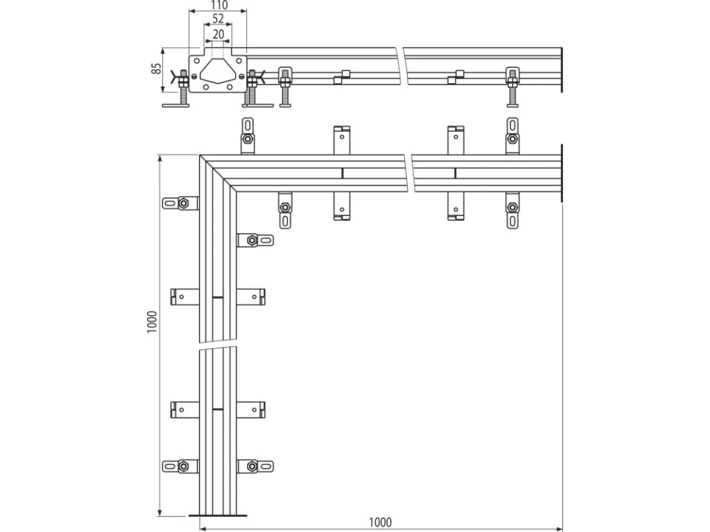 - Pevné ukotvení v betonu pomocí jednoduše nastavitelných noh a bočních kotev