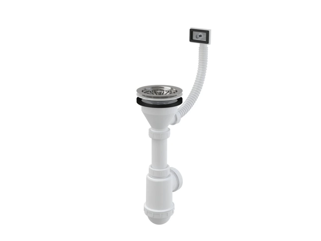 ALCA Sifon dřezový DN 40/50 s nerezovou mřížkou Ø 115 mm a flexi přepadem A447-DN50/40