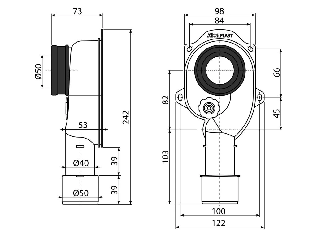 - Napojení na odpadní trubku Ø40/50 mm