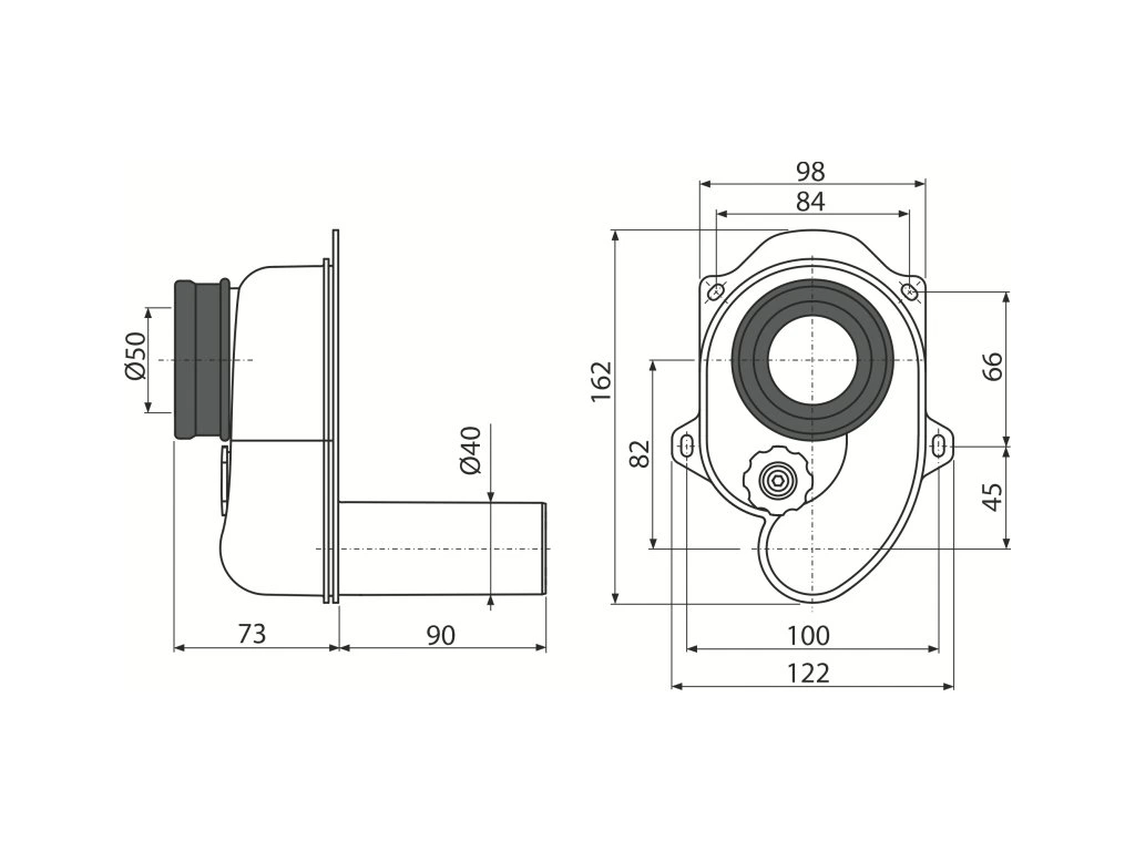 ALCA Sifon pisoárový DN 40 vodorovný s vrapovou vložkou Ø 50, plast A45B