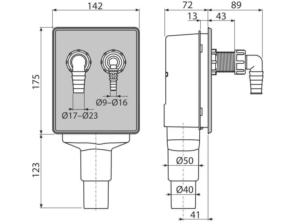 ALCA Sifon podomítkový pro pračku a sušičku, DN 50/40, nerez APS6