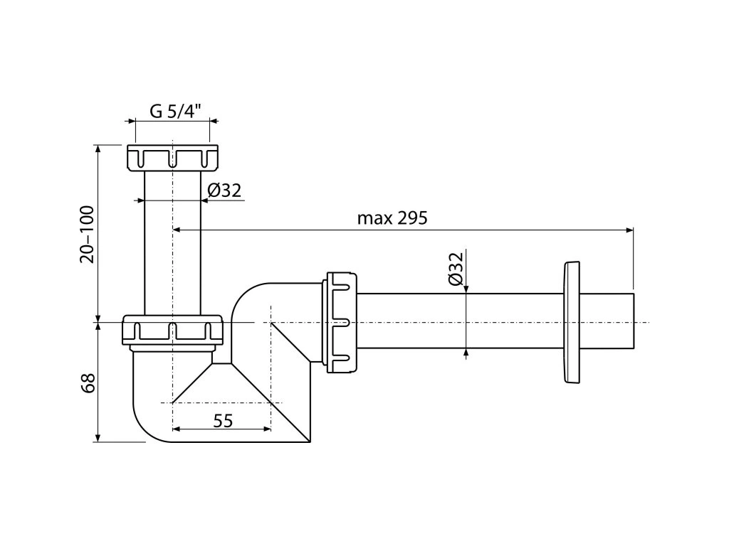 ALCA Sifon umyvadlový a bidetový DN 32 s převlečnou maticí G 5/4", plast A45F-DN32