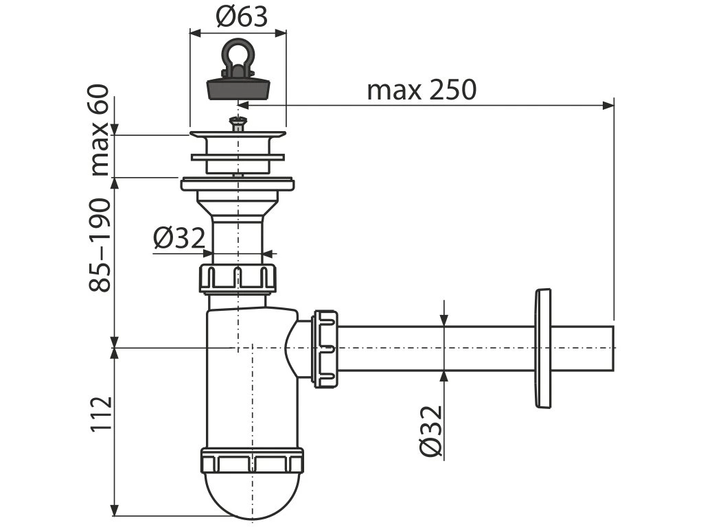 ALCA Sifon umyvadlový DN 32 s plastovou mřížkou Ø 62 mm, pryžová zátka A420