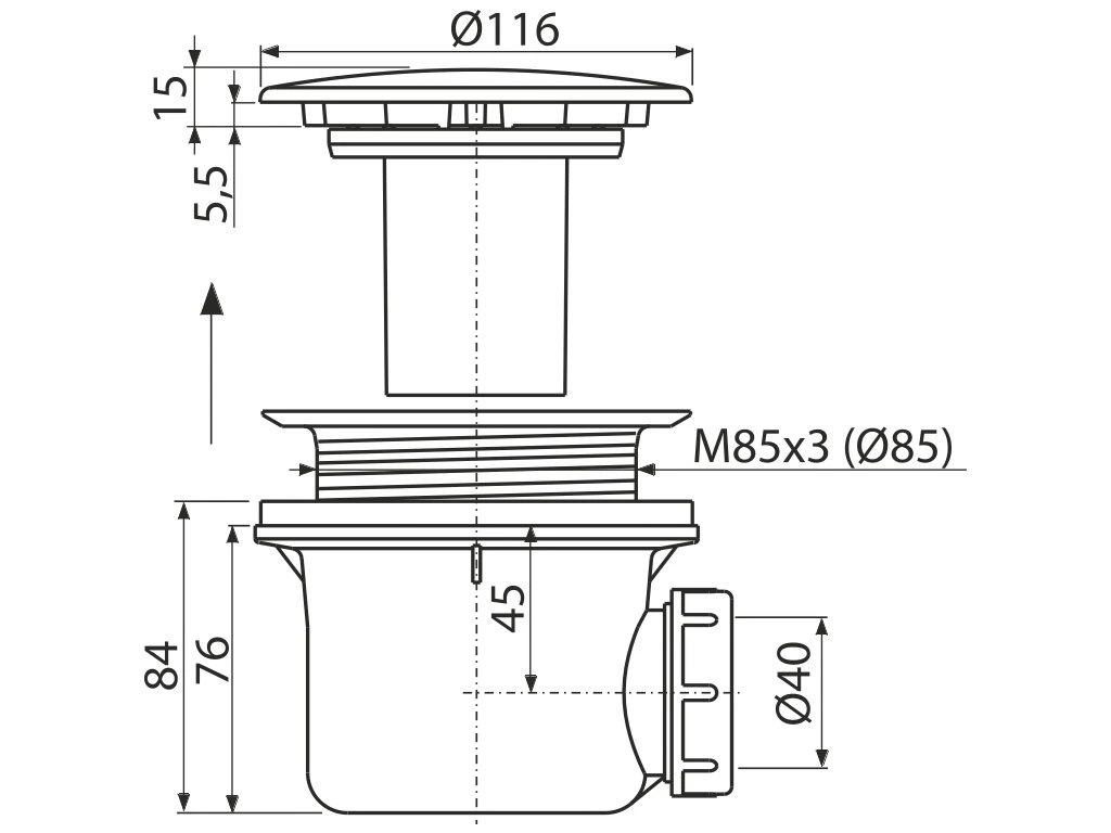 - Pro sprchové vaničky s odtokovým otvorem Ø90 mm