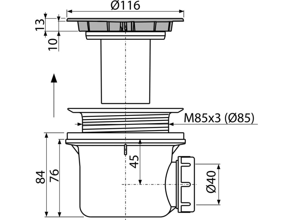 ALCA Sifon vaničkový, pro otvor 90 mm, DN 40, plast, chrom-lesk A49CR