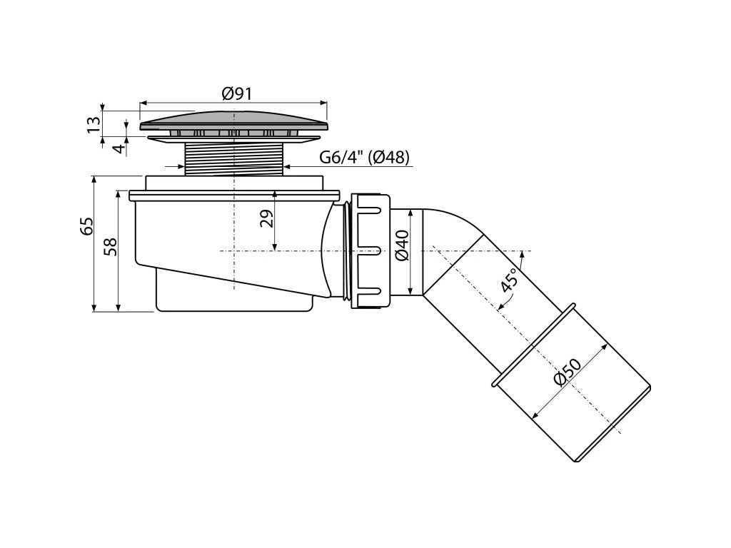 - Pro sprchové vaničky s odtokovým otvorem Ø60 mm