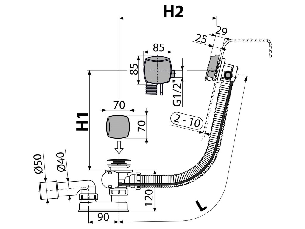 - Délka vanového sifonu 80 cm
