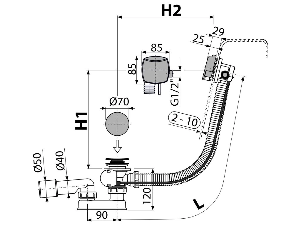 ALCA Sifon vanový automat s napouštěním přepadem, délka 80 cm, plast, chrom-lesk A564CRM1-80