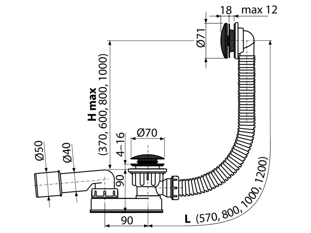 - Délka vanového sifonu 57 cm