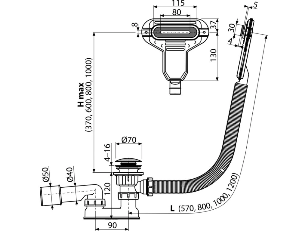 - Délka vanového sifonu 100 cm