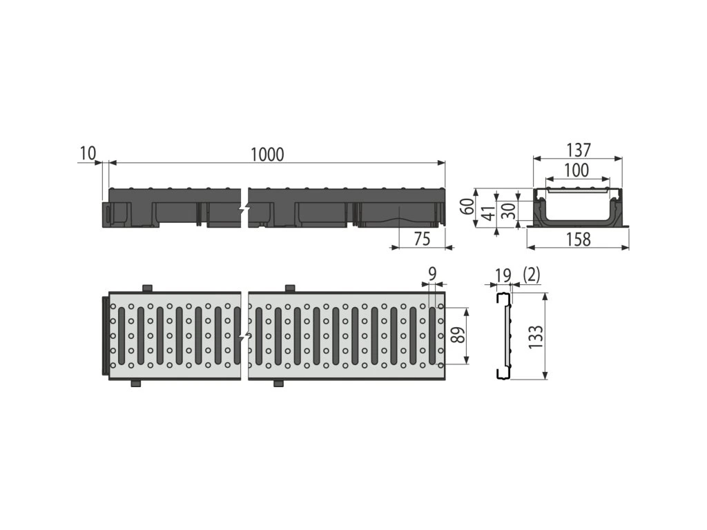 - Pozinkovaný rošt s „C“ profilem, šířka vtokové štěrbiny 9 mm