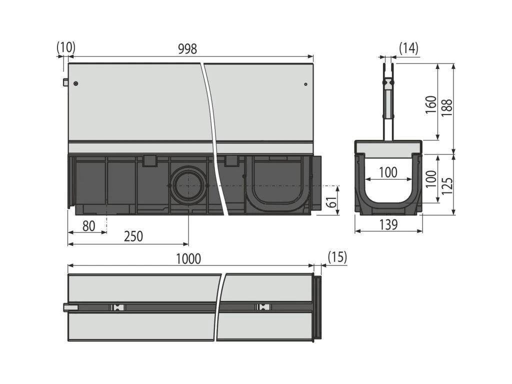ALCA Venkovní žlab štěrbinový se symetrickým nástavcem 160 mm, nerez AVZ101-R324