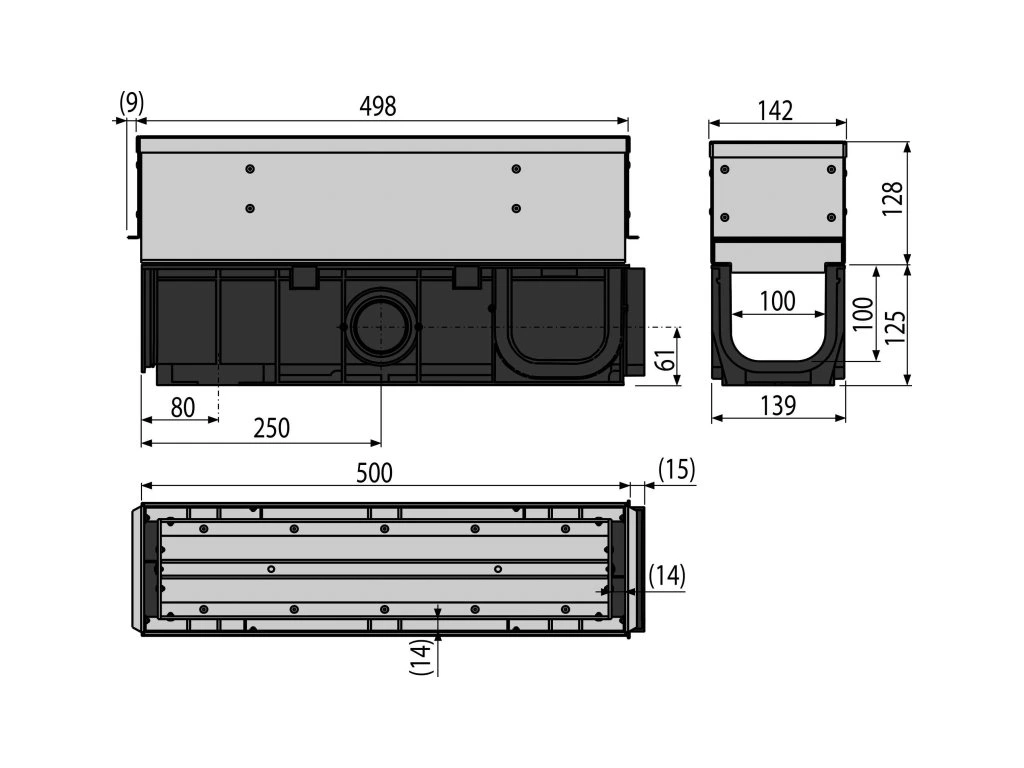 - Materiál žlabu: polypropylen plněný mastkem odolný proti mechanickému, chemickému a tepelnému poškození