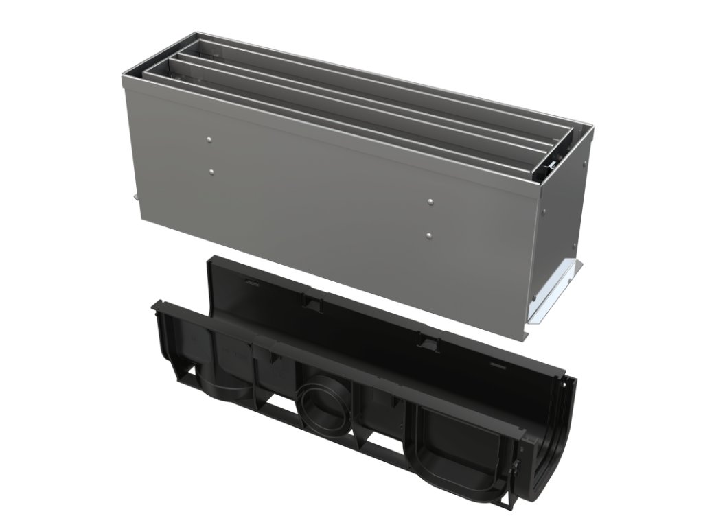 ALCA Venkovní žlab štěrbinový se symetrickým revizním nástavcem 160 mm, nerez AVZ101S-R324R