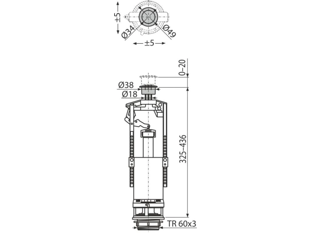 - Konstrukce umožňuje seřízení optimální výšky ventilu dle výšky nádržky