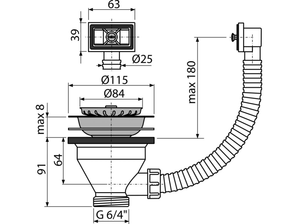 - Závit pro připojení k dřezovému sifonu 6/4"