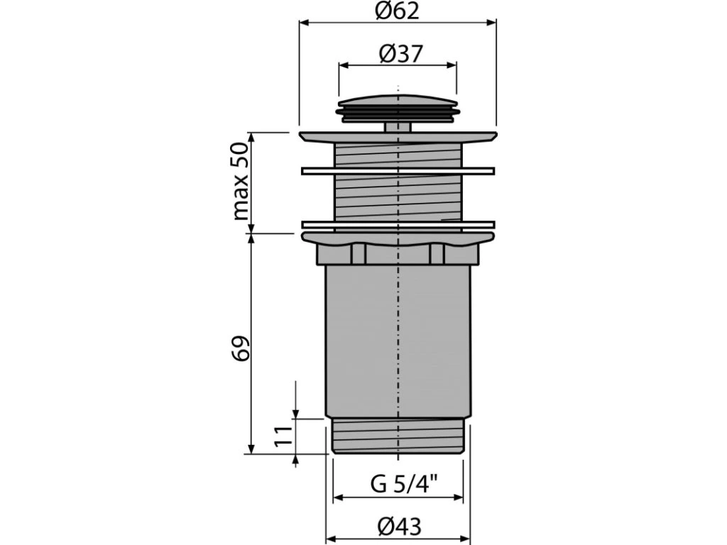 ALCA Výpust umyvadlová CLICK/CLACK G 5/4" bez přepadu, malá zátka, kov, chrom-lesk A394