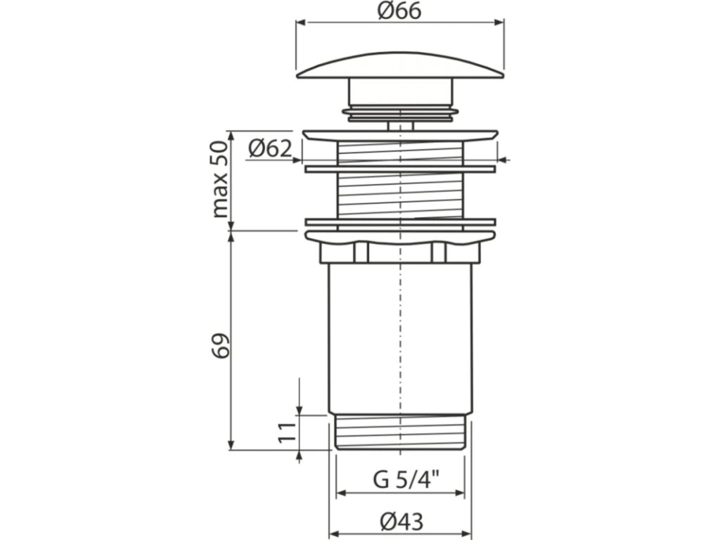 ALCA Výpust umyvadlová CLICK/CLACK G 5/4" bez přepadu, velká zátka, kov, bílá-lesk A395B