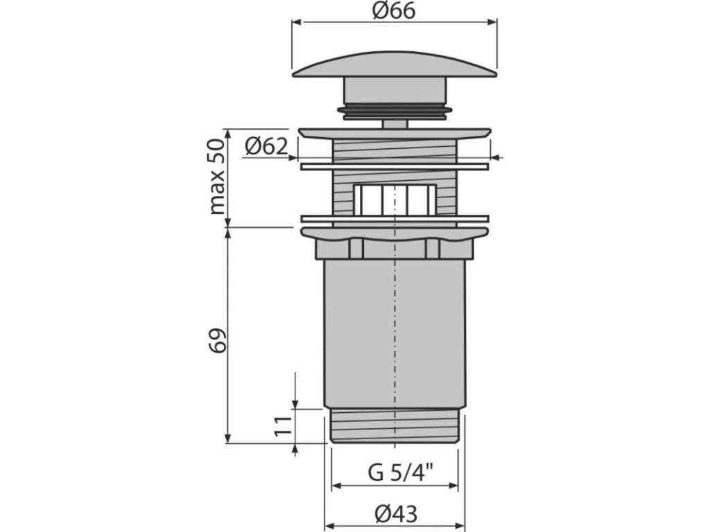 ALCA Výpust umyvadlová CLICK/CLACK G 5/4" s přepadem, velká zátka, kov, chrom-lesk A392C