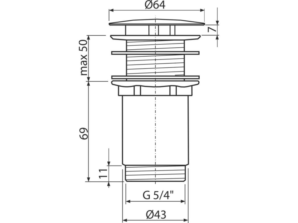 ALCA Výpust umyvadlová G 5/4", pro umyvadla bez přepadu, velká neuzavíratelná zátka, kov, bílá-lesk A396B