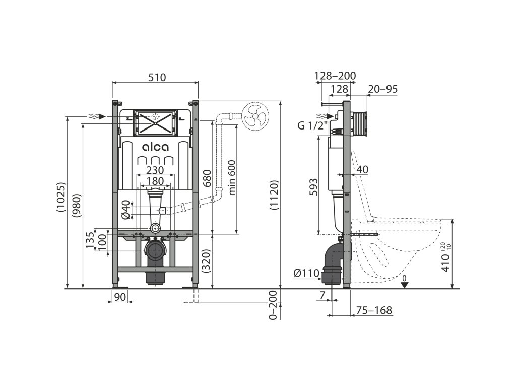 ALCA WC modul pro suchou instalaci (do sádrokartonu), dělený rám AM122/1120D