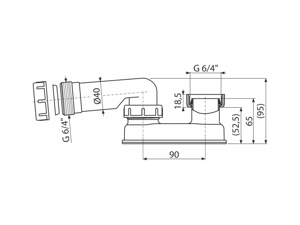 - Napojení na odpadní trubku Ø40 mm nebo závit 6/4"