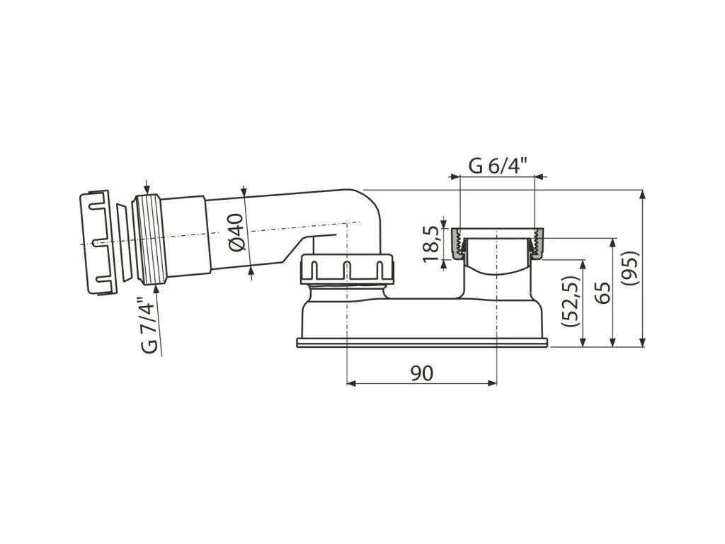- Napojení na odpadní trubku Ø40 mm nebo závit 7/4"