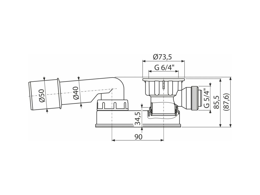 ALCA Zápachová uzávěra snížená pro vanové sifony G 6/4" × DN 40/50 A531