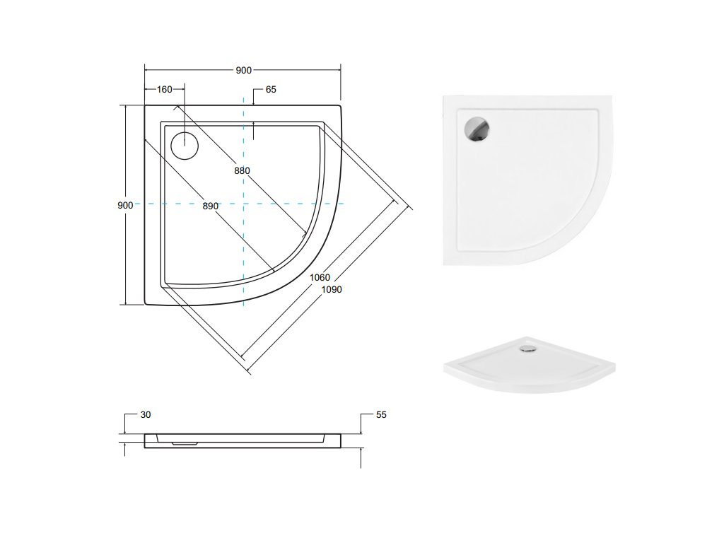Aplomo Aron Slim čtvrtkruhová sprchová vanička Rozměr vaničky: 90x90cm, BAA-90-NR