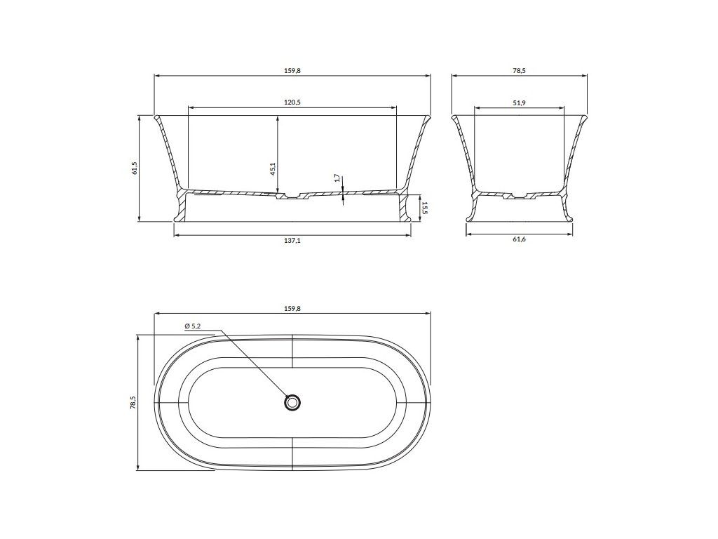 - rozměry vany - 159,8 x 78,5 x 61,5 cm (délka, šířka, celková výška)